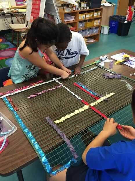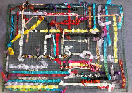 - Tejido, corte en tiras de 1 pulgada de ancho x 10-18" de largo (otra vez, reciclado es mejor - mirar para los restos de otros proyectos de costura) necesitarás unas docena tiras por estudiante. (Nota: Si usted tiene rasos brillantes, con lentejuelas, telas metálicas, esto hace que el proyecto incluso más divertido!)