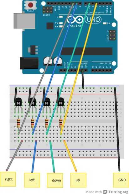 Una vez que tienes eso, tendremos que hacer un poco de soldadura. Agarra un cable y soldadura en la almohadilla que es el microchip. Hacer para los 4 botones. Un otro cable a la tierra de la distancia de la soldadura. Ahora queremos el Arduino para hacer el trabajo de controlar el mando a distancia para nosotros. Así que para hacerlo necesitamos usar transistores. Los transistores son como grifos de agua con la electricidad, un empuje suave en el mango, controla un flujo mucho más fuerte de agua. Arduino sólo puede hacer el impulso suave.