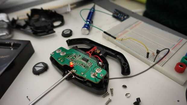 Dependiendo del modelo, debe tener ya sea una pieza de metal con cinta en la parte superior la placa de circuito o un botón. Ahora echemos un vistazo estos botones. Lo único que hacen es cerrar o abrir un circuito. Así que si agarras un pedazo de alambre e intentar retocar ambos lados (A y B) en el cierre, debe tener el coche reacciona como si usted oprimió ese botón.