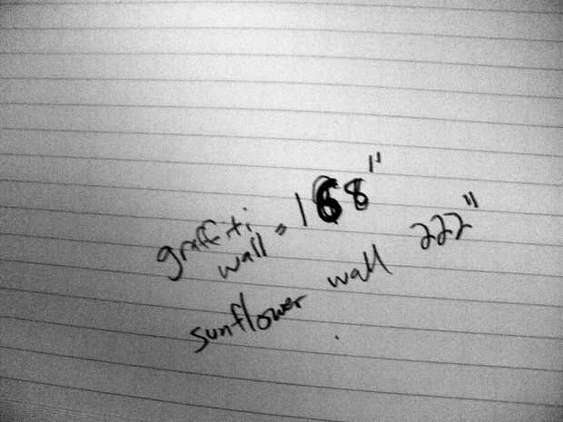2. ¿Qué lados es más largo? La medida más larga (que representa la pared más larga [s] en su habitación) se ejecutará a lo largo del lado largo de tu papel de gráfico. (Mis paredes más largas fueron 222 pulgadas, así que dibujé estas paredes del eje 11" de mi papel de gráfico).