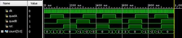 Puesto que fueron utilizados los codificadores rotatorios mecánicos, el interruptor y el codificador salidas pullup requiere resistores (5k Ohm) y un filtro LP añadió también contra rebotes. Esto era probablemente la parte más débil de mi diseño y sin duda requiere un trabajo más. He tenido problemas para obtener valores de conteo preciso de los codificadores, a pesar de simulaciones de los bloques de hardware que muestra funcionamiento (adjuntadas imágenes). No tengo tiempo para diagnosticar este problema antes de la demostración final, por lo que permanece como algo que te aconsejo que tome más tiempo para el diseño que yo!