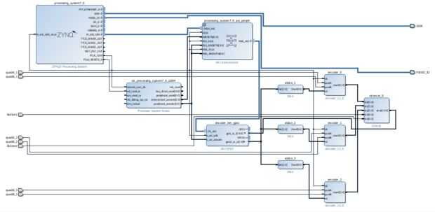 -encoder0, 1, 2: mi IP para interpretar entradas cuadratura de codificadores rotatorios. Pasos del codificador se registran como un valor de "recuento" que puede ser positiva o negativa. La primera entrada está presente para restablecer el valor de la cuenta, permitiendo que el PS leer el valor de la cuenta, y luego reiniciarlo. De esta manera, el valor de la cuenta nunca debe desbordar y causar resultados extraños.