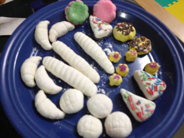 Se hacen decoraciones de fondant, utilizando alimentos de gel o líquido colorante y decorado con sprinkles y grageas de colores. Son en forma de tortas, pasteles y pan, árboles muertos, guirnalda en la puerta, guirnalda en la azotea y las setas.