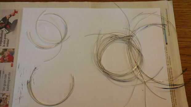 Primera pestaña corte los cables (las tiras de metal delgadas) la longitud de 1 celda superior y parte 1 inferior célula (longitudes de células alrededor de los 2 menos 1cm). En el caso de las 36 células con 2 líneas de ficha, necesita 60 cables de lengüeta larga (5/6 x 36 x 2). Usted también necesitará 12 ficha de corto (1 célula más 4cm) cables (1/6 x 36 x 2).