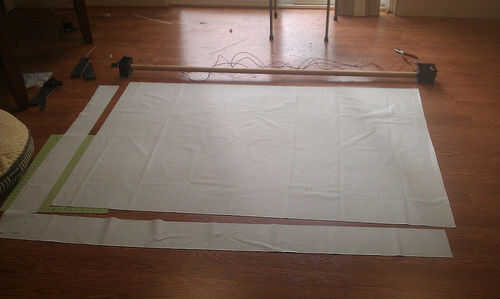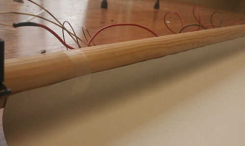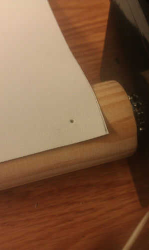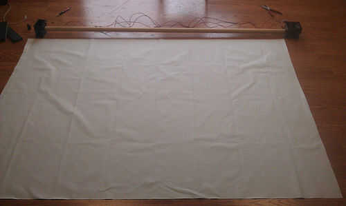 Con la pantalla cortado a la medida (y planchar si es necesario) empuje el borde hasta la barra que está en contacto con la varilla (ver las fotos, son probablemente más claras). Al colocar la pantalla que necesita tener en cuenta que la barra va girando de manera y que parte del material se proyectará en. Cuando todo se enfrenta a la manera correcta y la pantalla es tan cuadrada como sea posible a la barra, coloque pequeños pedazos de cinta a lo largo de la longitud para mantener todo en su lugar. Utilice un sacador de centro automático o un cuchillo para marcar el lugar donde los tornillos van a través de la pantalla, cerca de cada borde y 6"- 10" distancia entre. Ensanchar los agujeros de la pantalla presionando el punzón a través y coloque un tornillo y una arandela pequeña en cada posición. Una vez que todos los tornillos están en usted puede recortar o cinta hacia abajo, el borde de la pantalla sobresale más allá de los tornillos. Tiende a pegarse hacia fuera y entonces la pantalla no enrollar como limpia.