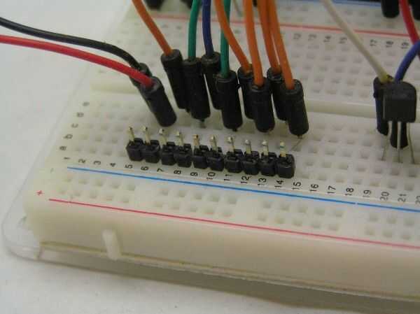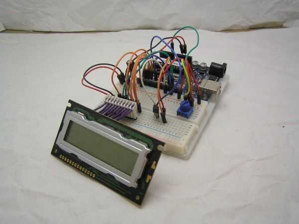 *: Pin 3 técnicamente debe ser conectado a un potenciómetro de 10K entre VCC y GND, no obstante la pantalla de mi tenía un buen contraste en la parte inferior de la gama del potenciómetro por lo até a la línea de contraste a la tierra. Además, quería el potenciómetro para otra cosa :)