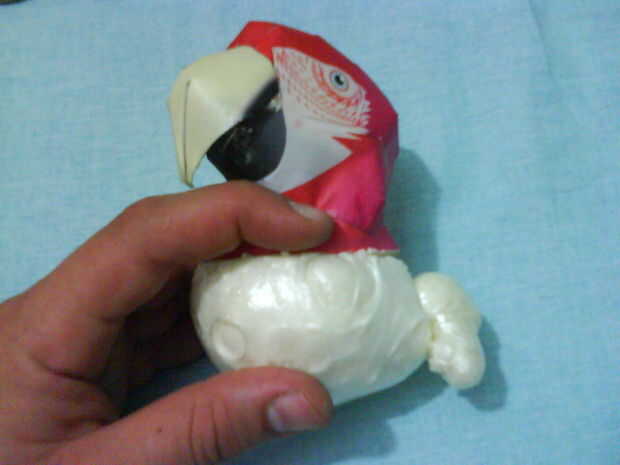 Preferí dejar una abertura para el posible mantenimiento si había algún defecto. Para ello, pegué algunas piezas de Velcro en el cuerpo de la guacamaya en lugar de pegar las piezas. Es bastante bueno.