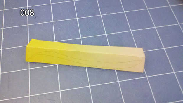 Corte 8 clientes en bloques para que pueda doblar por la mitad y pegarlos para que hay amarillo en ambos lados (foto 008), luego cortadas el tronco con curvas.