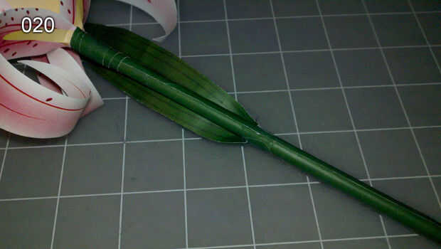 Poner pegamento en la pestaña blanca y coloque la hoja sobre el tallo con el blanco puedes tocarla. (imagen 019)