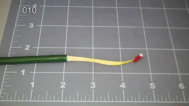 Crear el vástago 9 alrededor de un palillo de dientes a partir del punto más estrecho y termina en una forma que te deja con una paja verde sólida. Pegue el borde suelto hacia abajo. (imagen 011)
