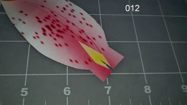 Corte una pequeña ranura en el extremo sin puntas de cada pétalo. (imagen 012)