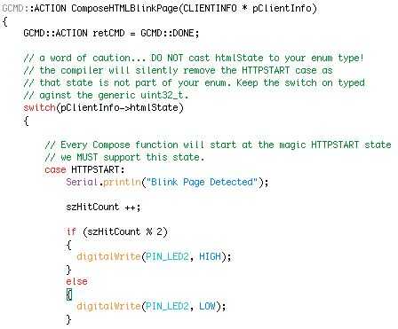 Ahora que tenemos nuestra página de blink funcionando, vamos a modificar para que utilice nuestros pines GPIO a parpadear un LED a bordo.