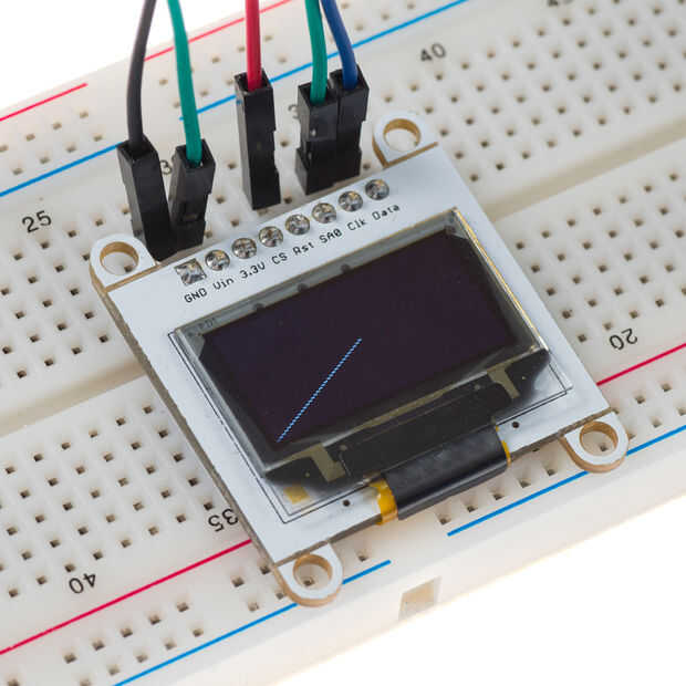 La función del pixel se utiliza para almacenar un píxel de la línea en el buffer de matriz en un lugar específico cada vez que se llama en el programa. De esta forma el buffer matriz se llena con todos los píxeles necesarios para dibujar la línea. Una vez que el buffer se carga con los elementos necesarios, la función Flush se utiliza para mostrar los datos en la pantalla. Dando a nuestra línea de argumentos de la función cuatro (puntos de inicio y final en x e y axis), ahora podemos dibujar una línea como la mostrada arriba.