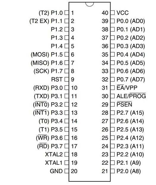 - 32 líneas I/O programables, dividido en 4 puertos (P0, P1, P2 y P3)