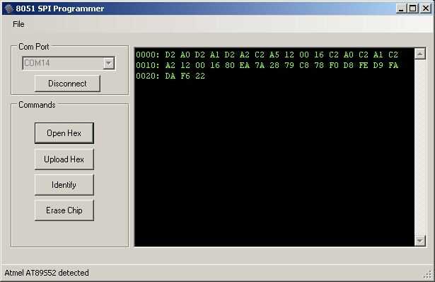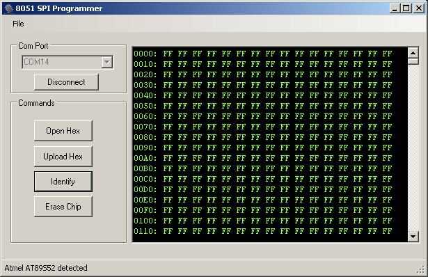 - Haga clic en identificar. El programador luego lee la firma del chip, luego la pantalla. En mi caso, el AT89S52. Todo está funcionando correctamente.