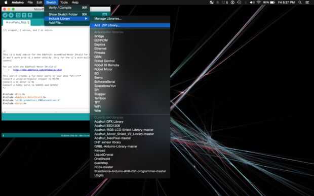 5. carga Motor MotorParty_FULL después de instalar el Motor de Adafruit protector de biblioteca he adjuntado.