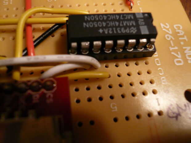 No te olvides de enchufar el 74HC4050 en el zócalo de la inmersión como se muestra en la foto de abajo.