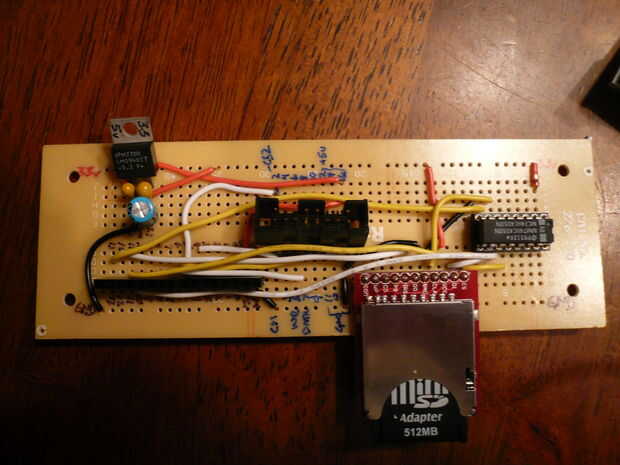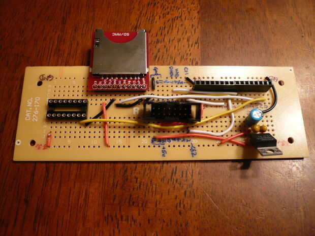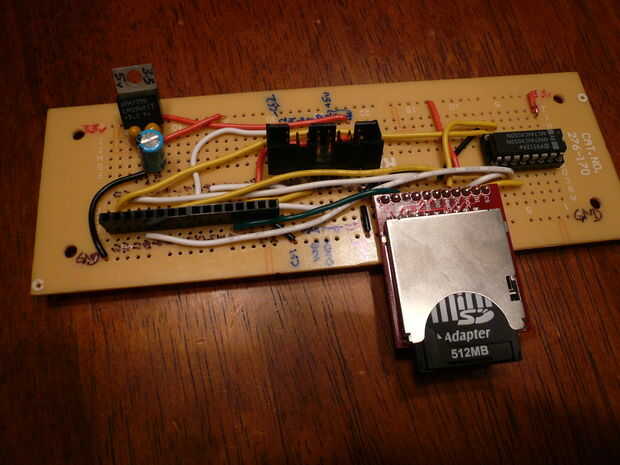 Algunos proyectos de Arduino que usan tarjetas SD utilizan una red de resistencia a la señal de 5 voltios y 3,3 voltios. Para mí esto no funcionaba bien. He encontrado una tarjeta SD que trabajado y varios que no lo hizo. En cuanto conectado el 74HC4050 todos mis tarjetas SD.