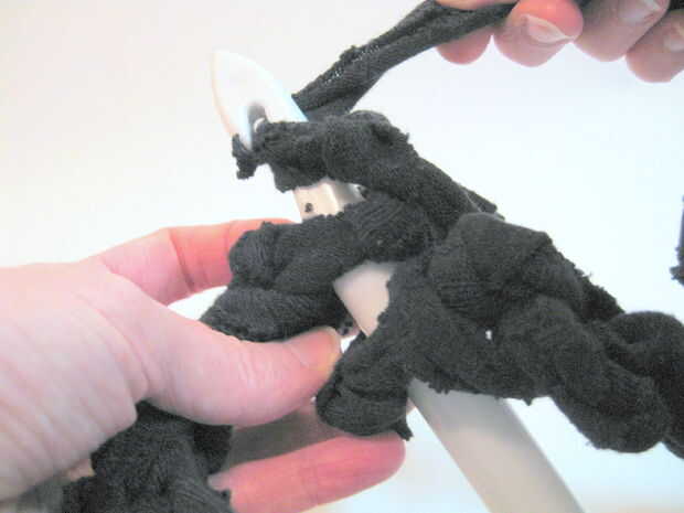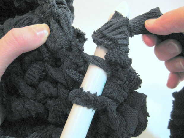 - Retire el gancho por todas tres lazos en el gancho. Usted debe terminar con sólo la nueva sarn en el gancho.