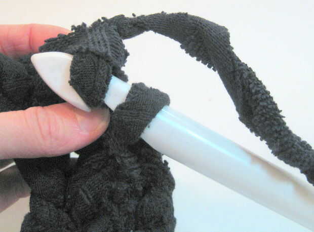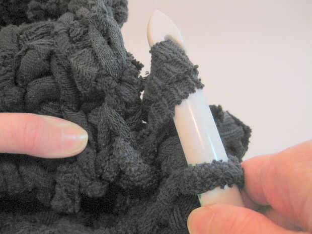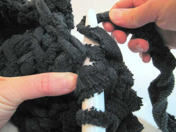 - Tire del gancho a través de lo slipknot para que sarn que usted a puesto en él se tira hacia abajo a través de lo slipknot. El slipknot debe deslizarse fuera del gancho, y debe dejarse con sarn "nuevo" en el gancho.