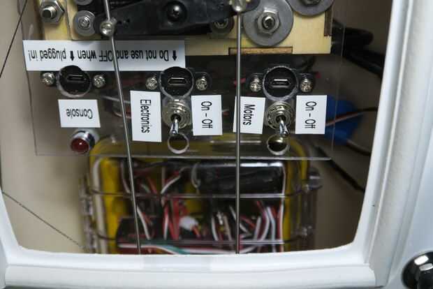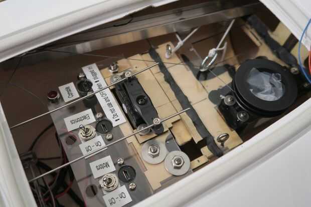 Hay dos servos en el barco: un servo multivuelta de torno a control vela ángulo y un servo de timón.
