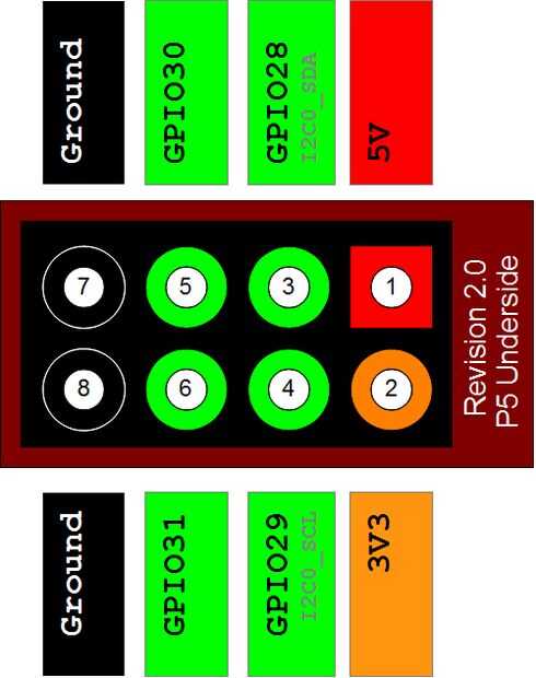 debido a la pantalla táctil usa los GPIOs de comunicación SPI e I2C tuve utilizar los pines extra del encabezado P5 superándose como GPIO 28, 29, 30 y 31