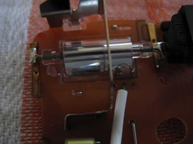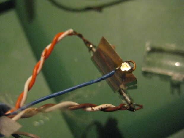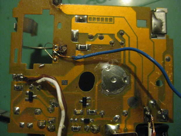 Para alambre, usé un trozo de chatarra de cable ethernet corriente a la bombilla y los cables por el interruptor gatillo de interruptor de carga. Había soldado un cable a cada uno de los lugares donde la bombilla una vez fue soldada en la placa de circuito. para sacarle más jugo a la bombilla soldar un cable directamente al condensador en el lugar de donde es originalmente y lo remonta para verificar que es la misma parte del circuito primero. luego había soldado un tercer cable en el punto donde algunos poco cable estaba tocando el reflector. No sé lo que este tercer cable es para pero la costumbre de bombilla flash sin este refector alrededor de él y puesto a tierra a este lugar en el tablero. se puede ver en la imagen siguiente. Originalmente yo soldar dos cables de cada color a la bombilla por más corriente pero que se trata de cable de núcleo sólido resultó que no necesita dos para que abrió un par más alambres para interruptores! En el otro extremo del cable se pueden ahora soldar la lámpara y el reflector en el cable, tiene dos alambres soldados en el bulbo y el tercer soldado al reflector. Eso es tres cables a la bombilla para que funcione.