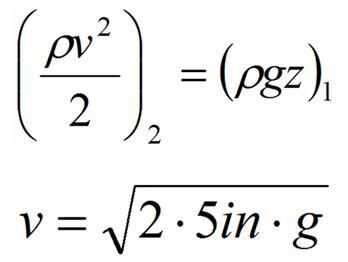 Como un ejemplo simple de cómo usar esta ecuación, sea la elevación de la tierra nuestra referencia de altura vertical y el sistema se construyó de modo que la parte inferior del depósito del agua está a nivel con el suelo. Cuando el cubo llena con 5 pulgadas de agua, ¿cuál será la velocidad instantánea del agua en los emisores? Al examinar un nodo en la parte superior del nivel del agua en el balde, la velocidad que se está moviendo hacia abajo la altura es despreciable, así que hay cero presión dinámica. Para la presión estática, sabemos que la tierra tiene un nivel natural presión de 1 atmósfera, y en la parte superior del agua en el depósito, esto es la única presión en ese nodo. Sin embargo, porque sabemos que el estado final del agua volver a la atmósfera en el planter, podemos elegir ignorar este valor, ya que simplemente será un desplazamiento estático para todo el sistema. Esto deja el efecto de campo de gravitación igual a la constante de sistema en este nodo y define la constante de sistema para todo el sistema y es igual a la densidad del agua, multiplicada por la aceleración debido a gravedad, multiplicada por 5 pulgadas.