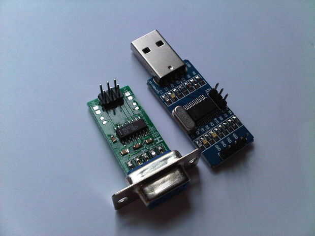 Programa #2 necesita un USB a RS232, o si tiene suerte de tener un puerto serial en su computadora portátil una simple tarjeta de RS232 trabajará (ambos característica en imagen superior). El diagrama del circuito describe cómo conectar el circuito a una de estas unidades.