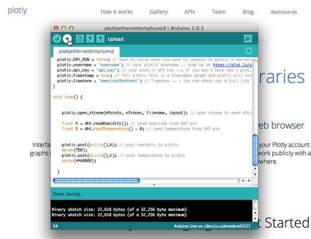 - Descargar el sketch de Arduino/Plotly para visualización de temperatura y humedad