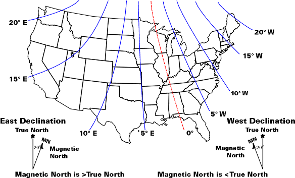 Además de su latitud, un otro valor que se necesita saber es la declinación magnética de su ubicación. Un brújula apunta hacia el "norte magnético", pero para un reloj de sol precisa, necesita saber qué dirección es "true north". Otra vez, esto dependerá de donde están en la tierra y puede ser determinado mediante el mapa de arriba, si se encuentra en la parte continental de nosotros. Lo sentimos, a todos los demás. Sin embargo, estoy seguro que se pueden encontrar mapas similares para otras regiones del mundo.