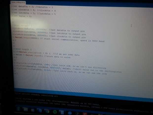 digitalWrite (latchPin, HIGH); Vuelva a colocar cierre, para que podamos ver los leds