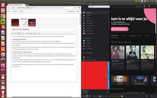Para obtener dos ventanas al lado de uno, puede utilizar CTRL + ALT + (teclado numérico) números para poner un programa en un lugar determinado en la pantalla, por ejemplo, CTRL + ALT + 4 lo pondrán a la izquierda de la mitad de la pantalla. Entonces puede fácilmente utilizar ALT + TAB para cambiar a otro programa y usar CTRL + ALT + 6 para obtener en el lado derecho, al lado del primer programa. (imagen 4)
