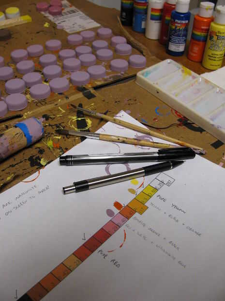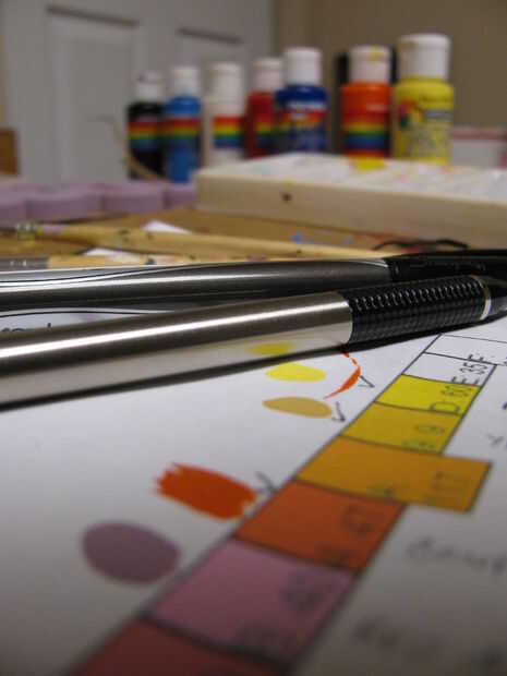 Luego creó un gráfico de la plataforma e imprime. Cuando se mezclan colores, primero yo se prueba contra la paleta. Para mí, una gran cantidad del mismo color de la mezcla era desafiante.