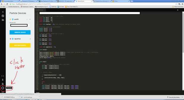 Para adquirir tu clave de nombre y autenticación de dispositivo del controlador partícula, siga la documentación en el sitio web https://www.particle.io/. En pocas palabras vas a ir en el IDE (versiones online o offline) y busque el icono de punto de mira obtener tu ID de dispositivo. Para que usted consiga es código de autenticación de vas a querer hacer clic en el engranaje en la esquina inferior izquierda. Una vez que éstos se encuentran a sólo poner en el script de python que se une y ahora listo para empezar a tomar ventaja de la mayor potencia de procesamiento de 2 Pi.