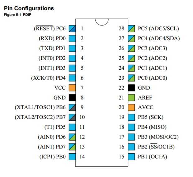 Para saber la configuración de pines de tu AVR, vaya al sitio web de Atmel. En la barra de búsqueda, escriba nombre de su AVR. Ahora, seleccione resultado de búsqueda apropiada y seleccione la opción "ficha técnica". Descargar y abrir. allí se puede ver la configuración de pines. Le estoy dando aquí configuración de hoja de datos y el pin de atmega8.