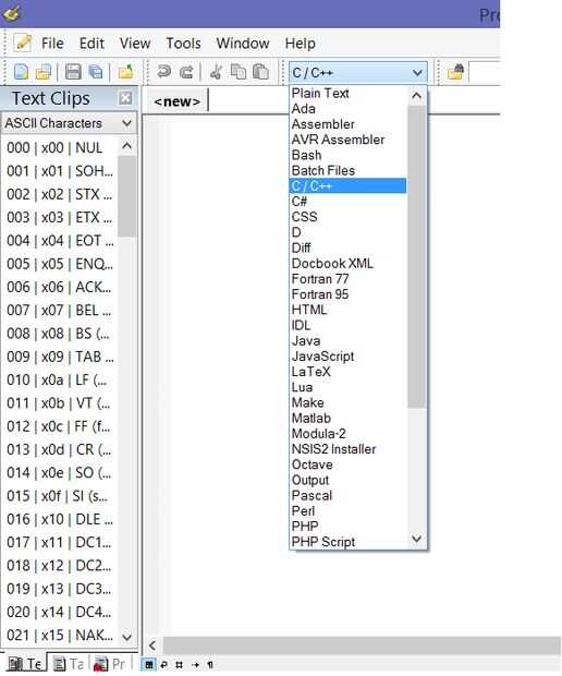 Abra el Bloc de notas del programador [winAVR]. Seleccione C y C++ de gota hacia abajo. (ver imagen). Ahora ve a archivo >> abierto >> (ahora navegar a donde descargaste el archivo main.c.).