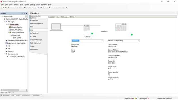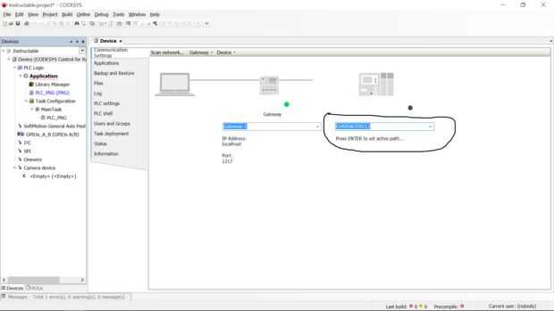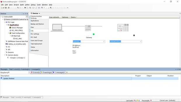 -Una vez que se ha actualizado el Pi (usted debe conseguir notificado por el destello naranja ficha mensaje en la parte inferior izquierda de la pantalla en CODESYS con el mensaje diciendo: "Actualización ha terminado").