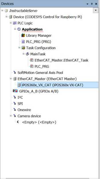 -Siguiendo el mismo proceso como paso 5 abrir un nuevo proyecto en Codesys y agregar un dispositivo y el amo de EtherCat de este tiempo sin embargo elegir el archivo XML que corresponde a la de la impulsión del motor para el dispositivo (ver foto de mi árbol de dispositivo después de Agregar esto)