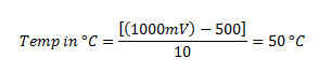 Temperatura en ° C = [(1000mV) -500] / 10 = 50 ° C