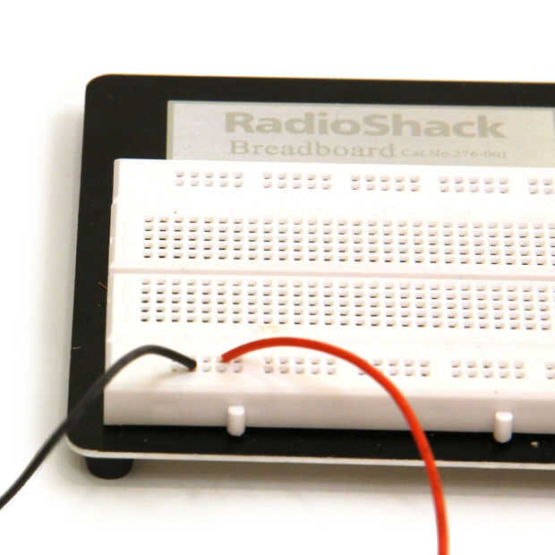 Conectar toma de tierra y + V a un lado de tu protoboard como se muestra en la figura 2. Recuerde, muchos breadboards separan cada una de las filas de dos en dos secciones (la electricidad no puede fluir por el centro de la Junta), así que necesitarás conectar estos grupos con cables de puente para asegurar que se está enviando energía a lo largo de la Junta (ver figuras 5 y 6). La figura 6 muestra un protoboard con poder en toda su longitud y en ambos lados.