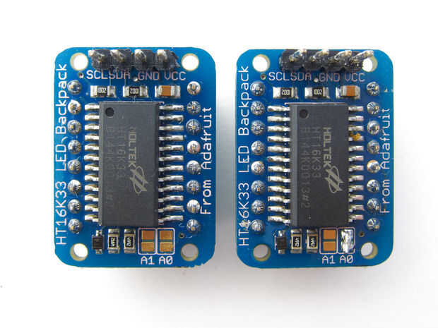 Repita el proceso con la segunda mochila de LED, pero esta vez tendrá que fijar una nueva dirección para él por un puente de soldadura a través de las almohadillas de A0 en la mochila. Vuelva a ejecutar el código "matrix8x8", pero cambia la línea "matrix.begin(0x70)" a "matrix.begin(0x71)" para que el código aborda la mochila nueva de LED.