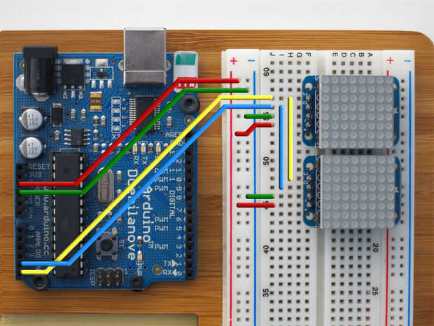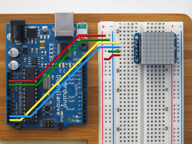 Enchufe la matriz en un protoboard y conecte de la siguiente manera: