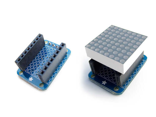 Siga las instrucciones que vienen con la mochila de matriz de LED para la soldadura en el reloj de datos de energía de 4 pines. Entonces, en lugar de soldar sobre la matriz de LED que viene con él, la soldadura de dos filas de encabezados femeninas a la mochila. Enchufe la matriz de LED mini incluida en las cabeceras.
