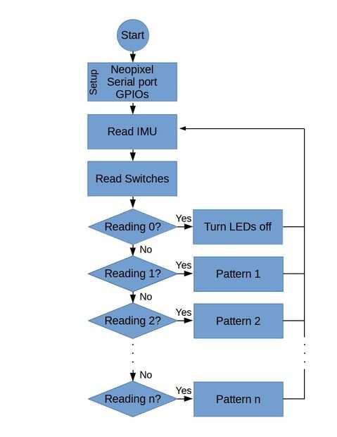- Las combinaciones se descifra utilizando una instrucción switch, aparte de la condición apagada, hay 3 combinaciones más utilizados para desencadenar otros patrones de la pluma ligera.