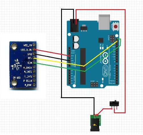 El primer paso es construir nuestro dispositivo. Esta operación es relativamente fácil, porque el escudo está directamente conectado a Arduino y no tienes lo cable. Por otro lado tenemos el sensor de la IMU, que sólo requiere de cuatro cables para ser conectado a Arduino.
