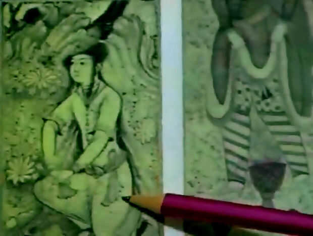 Con esta comparación, haz dibujante mejor y sabes que en el estilo, cómo las líneas utiliza en el trabajo son importantes. Así como concentrarse en dibujante y hacer líneas más fuertes de dibujo con lapiz, sin duda, te encuentras con menos problemas en dibujo de cepillo de pelo. Ahora empiezo a dibujar el bosquejo principal por tinta y pincel. Aquellos que eligen miniatura como comandante no elegir trabajo pesado; Me refiero a las obras que necesita la presión de la mano. Porque dibujo líneas de cepillos para el cabello son tan elegantes y causan tiembla la mano. En las escuelas de Isfahán y Tabriz, la línea y el color son tan importantes sobre todo en la escuela de Isfahán en era safavieh. Las líneas son muy importantes para formar nuestro sorteo, por lo tanto, muchas obras que habían realizado en época de safavieh, es imagen sólo dibujo de cepillo de pelo y hay poco de color y si lo es solo color y más color era color oro. (Figura 31)