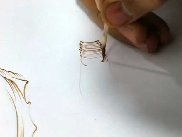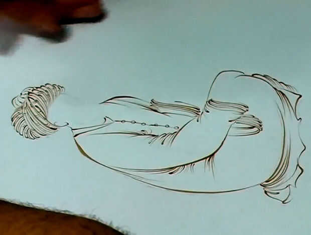 Después de ahora, cada línea que desea dibujar, seguir la línea anterior. Si al final de la primera línea era grueso y rico color, la segunda línea se invertirá, es decir que el principio de la línea es gruesa y ricamente coloreado. De la misma manera, para la siguiente línea al final de línea debe ser gruesa y ricamente coloreado. Provoca un buen formulario en la línea. Una de las partes más difíciles del dibujo de cepillo de pelo en safavieh era está llegando a las mangas. Tenga cuidado de no cortar las líneas y continuarse de hasta abajo y de abajo a un. Tanto como yendo hacia las mangas, mostramos las líneas más débiles y recortado y también algunas líneas no llegar hasta el final. Al igual que este. (Figura 36)