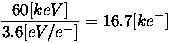 Una ventaja dominante de los detectores de semiconductor es la energía de ionización pequeña (E), independiente de la energía y el tipo de radiación incidente. Esta simplificación permite a cuenta para el número de pares electrón-hueco en términos de la energía de la radiación incidente, siempre que la partícula se detiene completamente en el volumen activo del detector. Para el silicio a 23 C (*) tenemos E ~ 3.6 eV. Asumiendo que toda la energía se deposita y utilizando la energía de ionización se puede calcular la cantidad de electrones producida por una fuente determinada. Por ejemplo, daría una 60keV de rayos gamma de una fuente de Americium−241 :-ver en la foto de la ecuación anterior - y dando por resultado una carga depositada de 0.045 fC/keV.