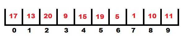 Al describir la matriz anterior, se diría, por ejemplo, que en el índice 4 es el valor 15. Si tuviéramos que ordenar esta matriz, sería el valor 1 en el índice 0, y sería el valor 20 en índice 9.